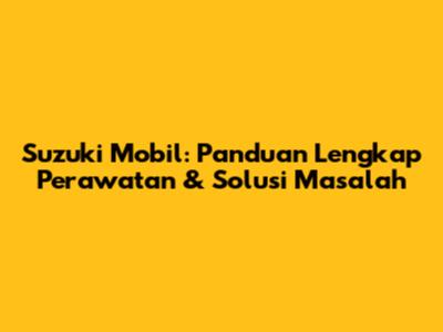 Suzuki Mobil: Panduan Lengkap Perawatan & Solusi Masalah
