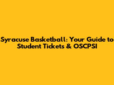 Syracuse Basketball: Student Ticket Guide & OSCPSI Details