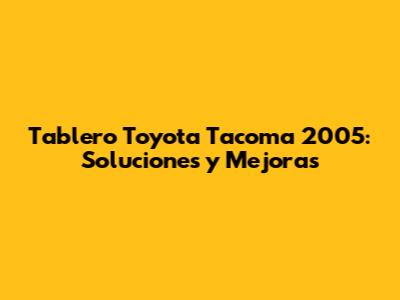 Tablero Toyota Tacoma 2005: Soluciones Y Mejoras