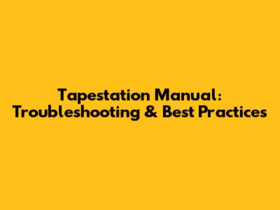 Tapestation Manual: Troubleshooting & Best Practices