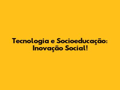 Tecnologia E Socioeducação: Inovação Social!