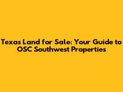 Hey there, land enthusiasts! Are you on the hunt for your own slice of Texas paradise? Well, you've landed in the right spot! Today, we're diving deep into the world of Texas land for sale, specifically focusing on properties offered by OSC Southwest SC. We'll explore what makes these lands so appealing, what to consider before you buy, and how to make your dream of owning Texas land a reality. So, grab your boots, and let's get started!
