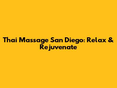 Thai Massage San Diego: Relax & Rejuvenate