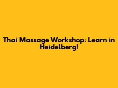 Thai Massage Workshop: Learn In Heidelberg!