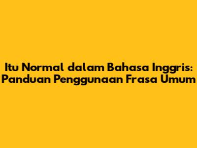 Bahasa Inggris adalah bahasa global yang kaya dengan nuansa dan ungkapan. Memahami bagaimana mengatakan "itu normal" dalam bahasa Inggris sangat penting untuk komunikasi sehari-hari. Dalam artikel ini, kita akan membahas berbagai cara untuk menyampaikan gagasan ini, memberikan contoh, dan menjelaskan konteks penggunaannya. Mari kita selami bersama!