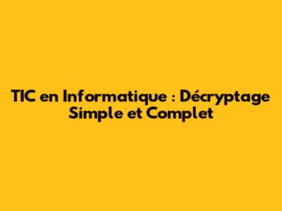 TIC En Informatique : Décryptage Simple Et Complet