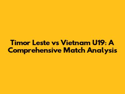 Timor Leste Vs Vietnam U19: Match Analysis & Prediction