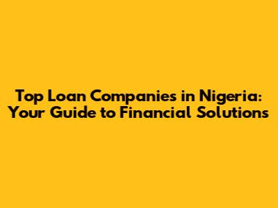 Top Loan Companies In Nigeria: Your Guide To Financial Solutions