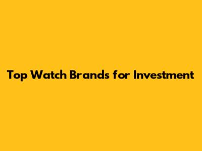 Top Watch Brands For Investment