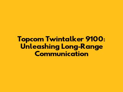 Maximizing Your Range: Tips and Tricks for the Topcom Twintalker 9100