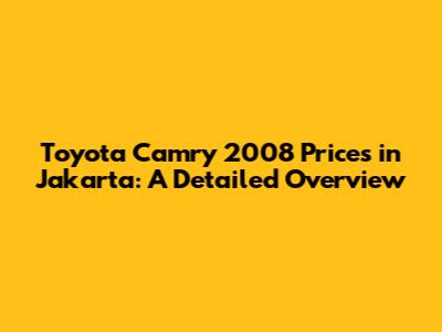 Hey guys! Are you curious about the Toyota Camry 2008 prices in Jakarta? Or maybe you're considering grabbing one for yourself? You've come to the right place! We're diving deep into everything you need to know about the Toyota Camry 2008, specifically focusing on the Jakarta market. This includes factors influencing the price, what to look for when buying, and why this car remains a popular choice. Whether you're a first-time buyer or a seasoned car enthusiast, this guide will equip you with the knowledge to make an informed decision.