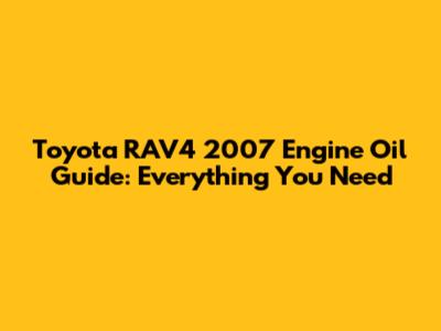 Toyota RAV4 2007 Engine Oil Guide: Everything You Need