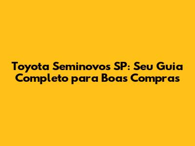 Toyota Seminovos SP: Seu Guia Completo Para Boas Compras