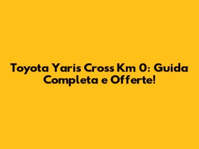 Acquistare una Toyota Yaris Cross Km 0 è un'ottima opportunità per risparmiare e guidare un'auto nuova e affidabile. Segui i consigli di questa guida, cerca le migliori offerte su Subito.it e altri portali, e preparati a salire a bordo della tua nuova Yaris Cross. Ricorda di fare attenzione ai dettagli, di confrontare diverse offerte, e di negoziare il prezzo per ottenere il miglior affare possibile.