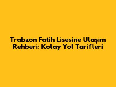 Hey millet! Trabzon'a yolunuz düştüyse ve Fatih Lisesi'ne gitmek istiyorsanız, doğru yerdesiniz. Bu rehberimizde, Trabzon Fatih Lisesi yol tarifi konusunda aklınıza takılan her şeyi bulacaksınız. İster toplu taşıma kullanın, ister kendi aracınızla gelin, adım adım, en kolay ve pratik ulaşım yöntemlerini sizin için derledik. Hadi, Trabzon Fatih Lisesi'ne nasıl gidilir sorusunun cevabını birlikte bulalım!