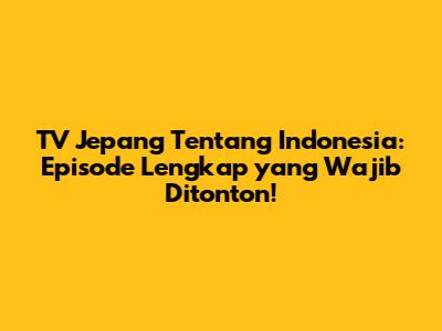 TV Jepang Tentang Indonesia: Episode Lengkap Yang Wajib Ditonton!