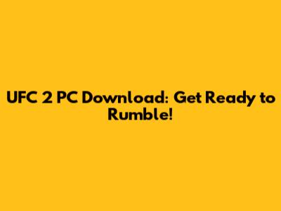 UFC 2 PC Download: Get Ready To Rumble!