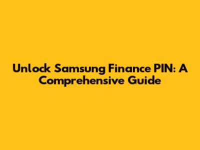 Unlock Samsung Finance PIN: A Comprehensive Guide