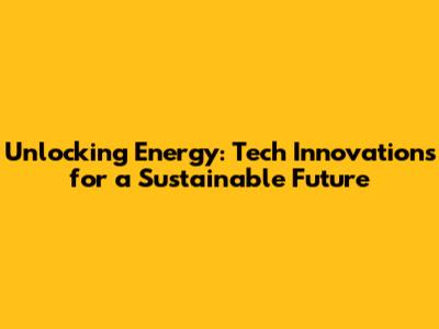 Unlocking Energy: Tech Innovations For A Sustainable Future