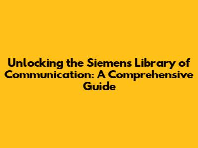 Unlocking The Siemens Library Of Communication: A Comprehensive Guide