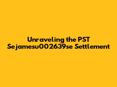 Unraveling The PST Sejamesu002639se Settlement