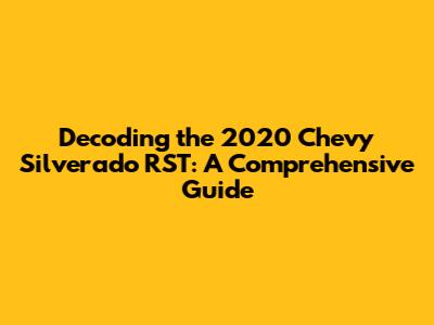 Unveiling The 2020 Chevy Silverado RST: What Does It Really Mean?
