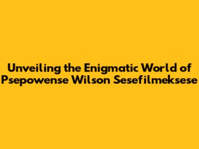 Unveiling The Enigmatic World Of Psepowense Wilson Sesefilmeksese