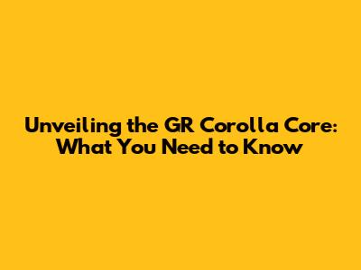Unveiling The GR Corolla Core: What You Need To Know