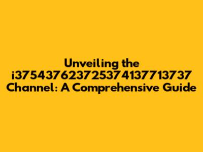 Unveiling The I375437623725374137713737 Channel: A Comprehensive Guide