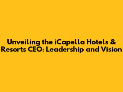 Unveiling The ICapella Hotels & Resorts CEO: Leadership And Vision