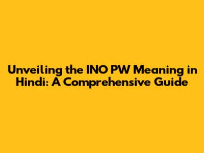 Hey guys! Ever stumbled upon "INO PW" and wondered what the heck it means in Hindi? Well, you're in the right place! We're about to dive deep into the meaning of INO PW in Hindi, exploring its various facets and providing you with a crystal-clear understanding. Buckle up, because we're going on a linguistic adventure!