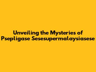Unveiling The Mysteries Of Psepligase Sesesupermalaysiasese