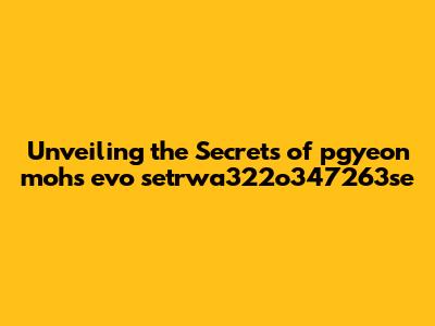 Unveiling The Secrets Of Pgyeon Mohs Evo Setrwa322o347263se