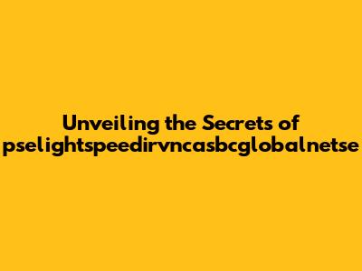 Unveiling The Secrets Of Pselightspeedirvncasbcglobalnetse