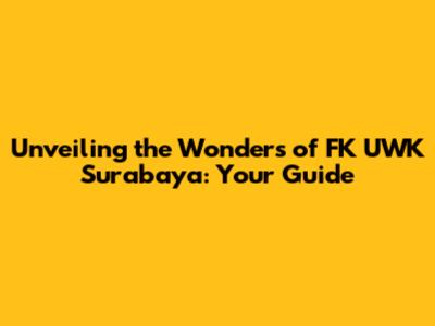 Unveiling The Wonders Of FK UWK Surabaya: Your Guide