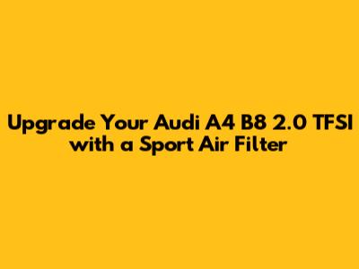 Upgrading to a sport air filter is a great way to improve the performance and sound of your Audi A4 B8 2.0 TFSI. Whether you choose a drop-in replacement filter, a short ram intake, or a cold air intake, you'll enjoy increased airflow, improved throttle response, and a more engaging driving experience. Just be sure to choose a high-quality filter from a reputable brand and maintain it properly to ensure optimal performance and longevity. So, go ahead and give your Audi the breath of fresh air it deserves!