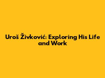 Uroš Živković: Exploring His Life And Work