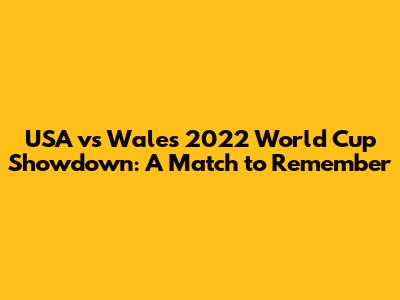 USA Vs Wales 2022 World Cup Showdown