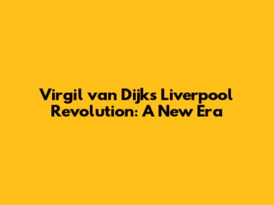 Virgil Van Dijk's Liverpool Revolution: A New Era