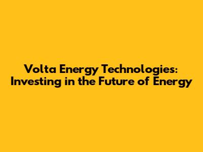 Volta Energy Technologies: Investing In The Future Of Energy