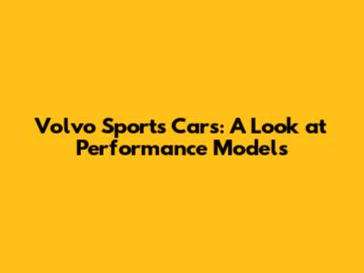 Volvo Sports Cars: A Look At Performance Models