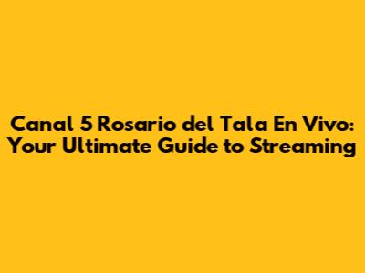 Hey guys! Are you looking to catch Canal 5 Rosario del Tala en vivo? You've come to the right place! In this article, we're going to dive deep into everything you need to know about streaming Canal 5, from how to find it to what kind of awesome content you can expect. Get ready to never miss your favorite shows again!