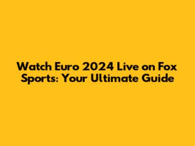 Watch Euro 2024 Live On Fox Sports: Your Ultimate Guide