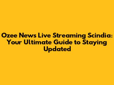 Watch Scindia Live: Ozee News Streaming Now!
