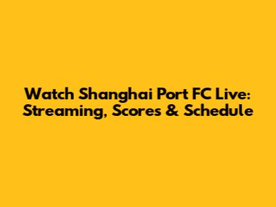 Watch Shanghai Port FC Live: Streaming, Scores & Schedule