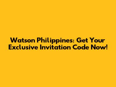 Watson Philippines: Get Your Exclusive Invitation Code Now!