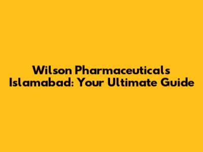 Wilson Pharmaceuticals In Islamabad: Your Complete Guide