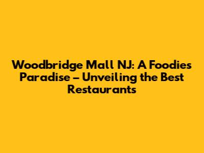 In conclusion, Woodbridge Mall NJ is a remarkable dining destination, offering a diverse range of restaurants to suit any taste. From quick bites to full-service restaurants, you'll find a world of flavors waiting to be explored. Whether you are craving classic American dishes, exotic international cuisine, or simply a quick snack, Woodbridge Mall has something for everyone. Embrace the opportunity to savor the flavors and create memorable experiences at the best restaurants in Woodbridge Mall NJ. Use this guide to plan your next culinary adventure and discover the hidden gems and popular favorites that make the mall a true foodie paradise. Enjoy your dining experience!