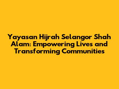 Hey guys! Ever heard of Yayasan Hijrah Selangor Shah Alam? If you're looking for an organization that's truly making a difference in the community, then you've come to the right place. This foundation is all about empowering individuals and transforming lives right here in Selangor, particularly in Shah Alam. Let's dive into what makes Yayasan Hijrah Selangor so special and how it's contributing to the betterment of society.
