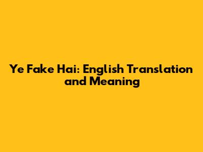 What Does "Ye Fake Hai" Mean in English?